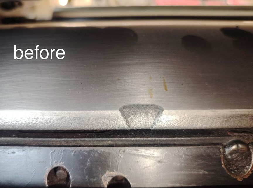 Damages caused by foreign objects such as screws, keys, or bearing failures usually require complete removal of the cylinder and sending it to the manufacturer. Thanks to our unique advanced welding and electroplating technologies, we can per form repairs directly on the installed cylinder, saving you time and additional costs for removal and transport.